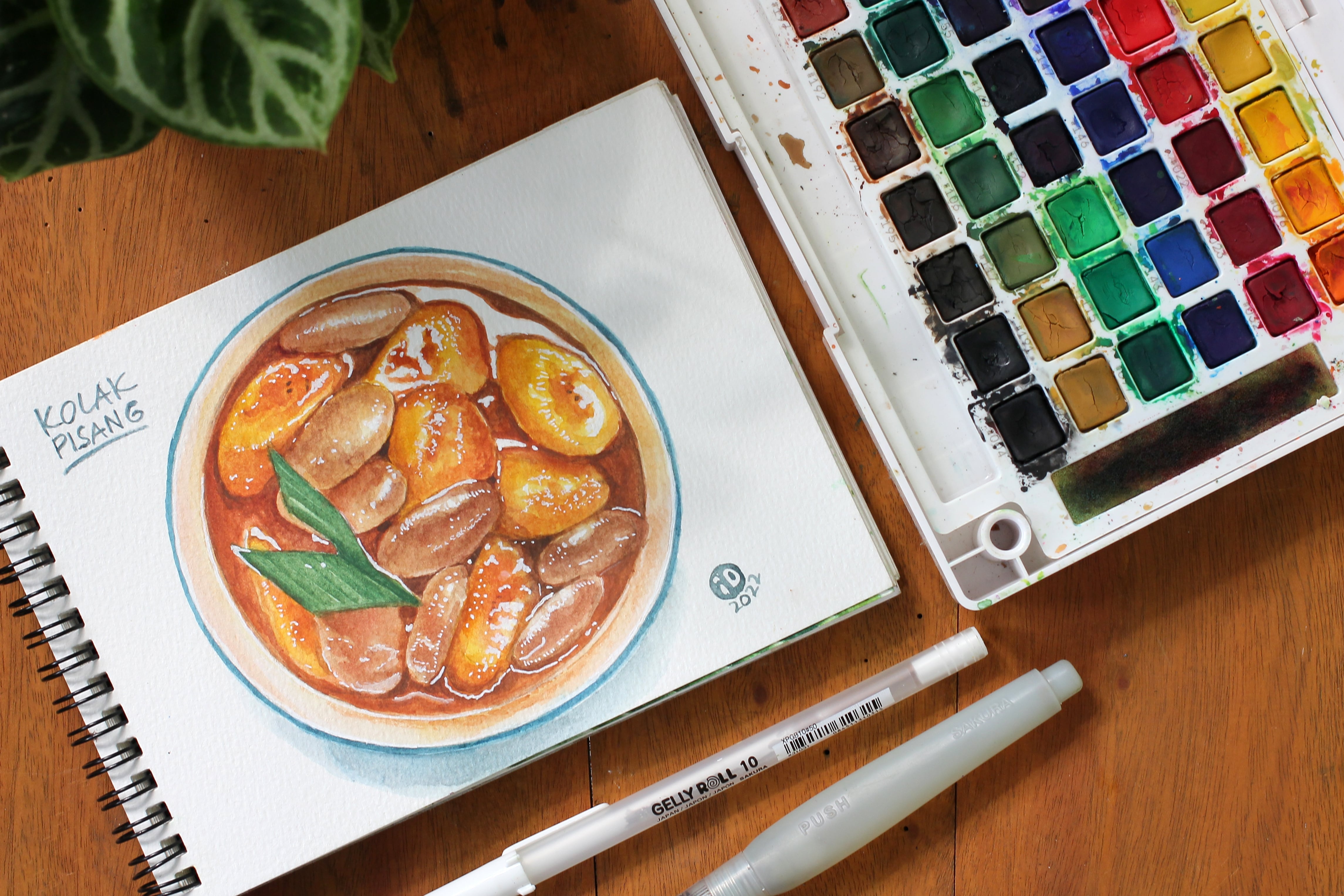 - The bright and vibrant appearance of Sakura Koi Watercolors resembles Kolak Pisang (one of the Indonesian traditional cuisine) very well. Which mostly uses brown and authentic green colors for pandan leaves. The composition and placement of highlights from objects are also very good so can maximize the realistic impression.