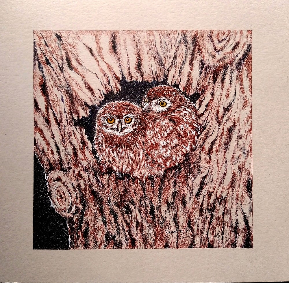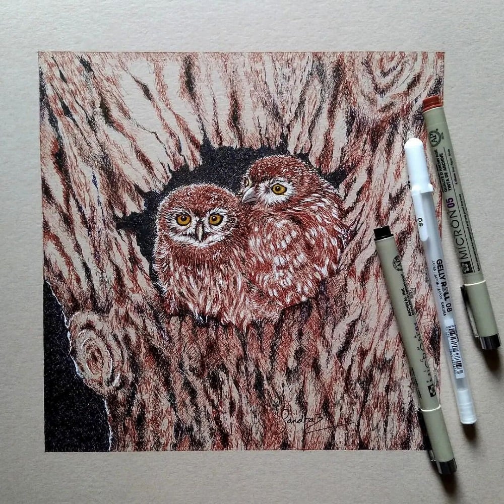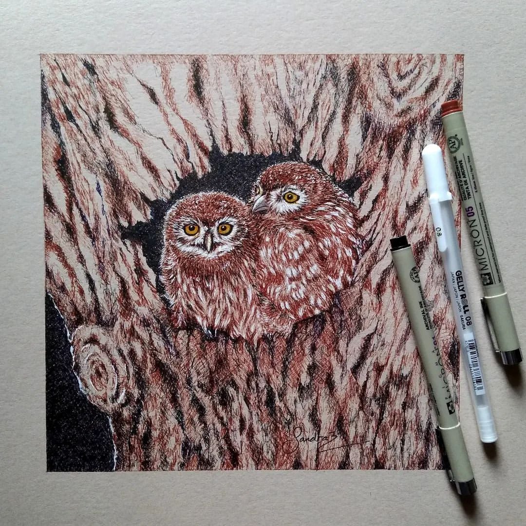 - The animal portrait is unbelievably realistic. This artist displayed superb pen stroke techniques in the creation of this animal painting that makes you feel like reaching out to stroke the smooth soft feathers of the owls. And her love for animal conservation speaks volumes through her art. Amazing talent.