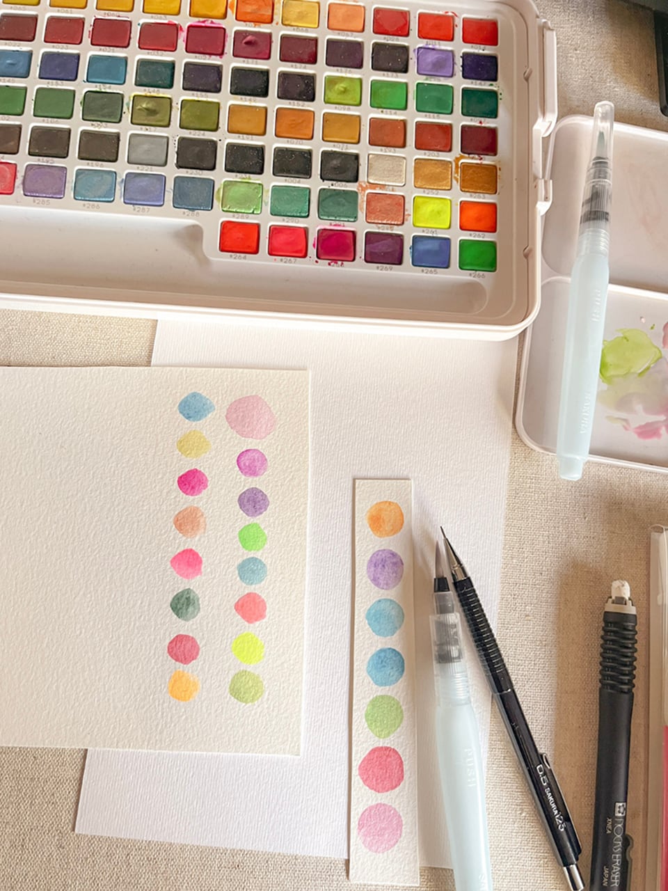 Choose Your Colors: Test out a watercolor palette and decide on a soft, warm color scheme.