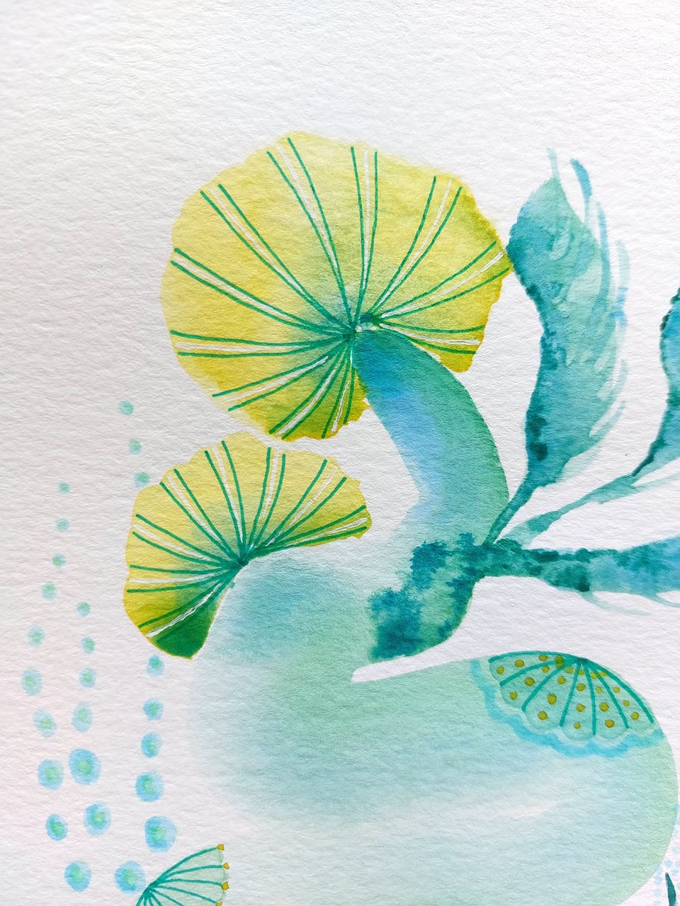 Use Pigma Micron 05 to draw fine outlines of petals. Then, add white Gelly Roll highlights between the green lines to bring sparkle and depth to your flower.