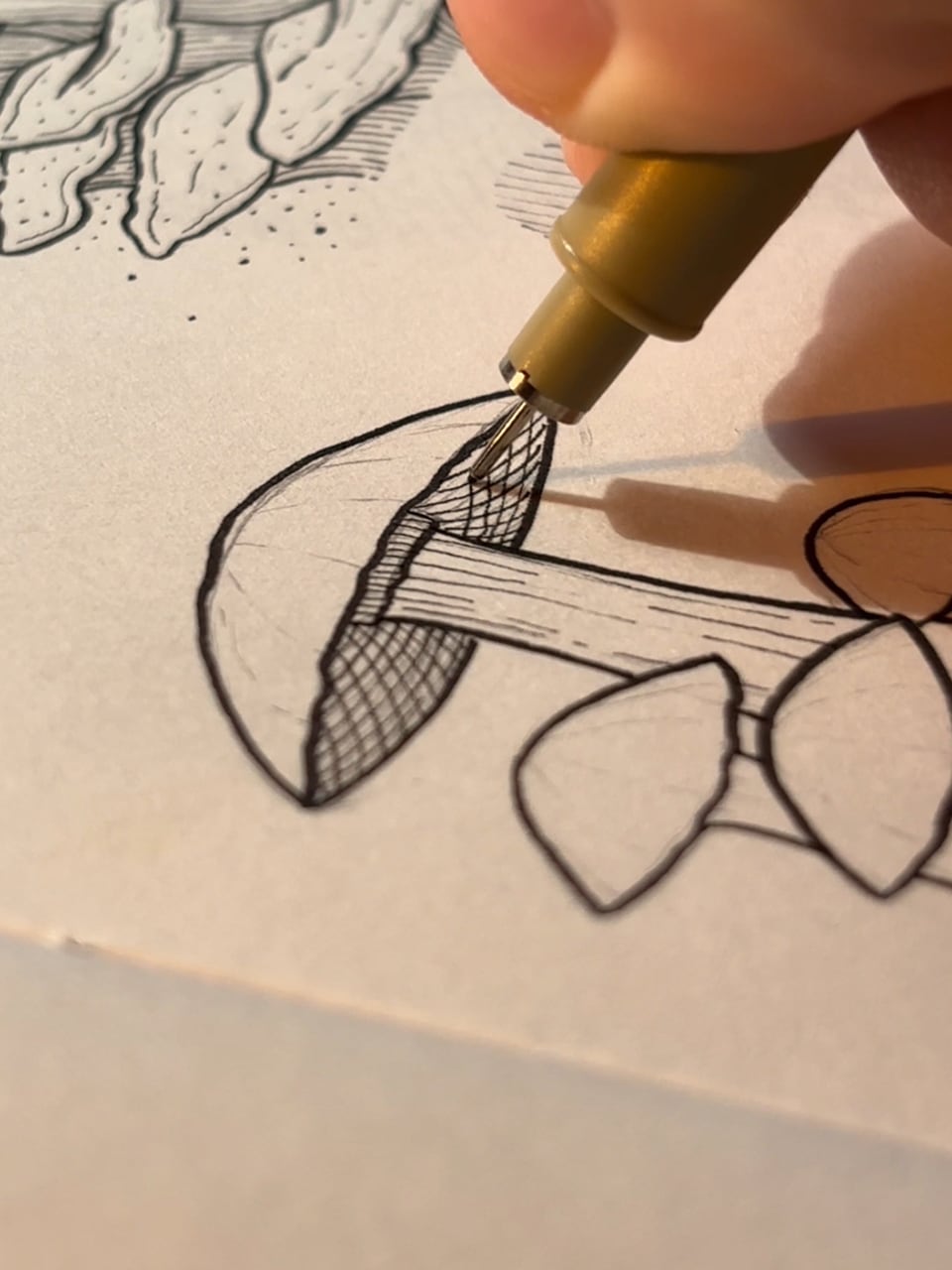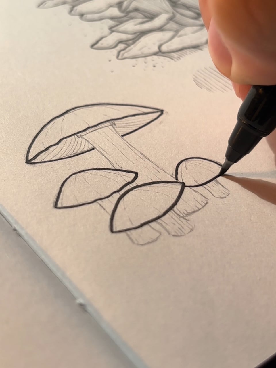 Mushrooms are an easy subject for beginners to start with. In this tutorial, we’ll show you how to use cross-hatching and simple line techniques with Pigma Micron pens to create depth and shading effortlessly.