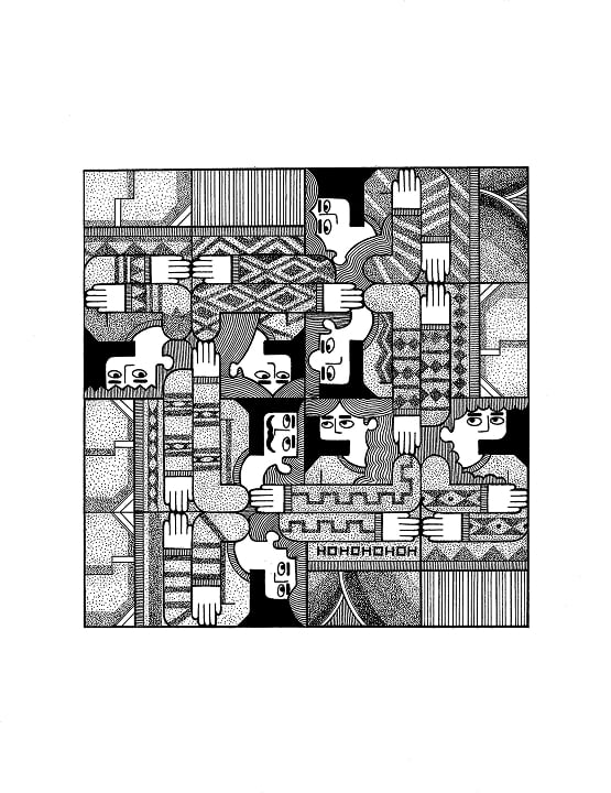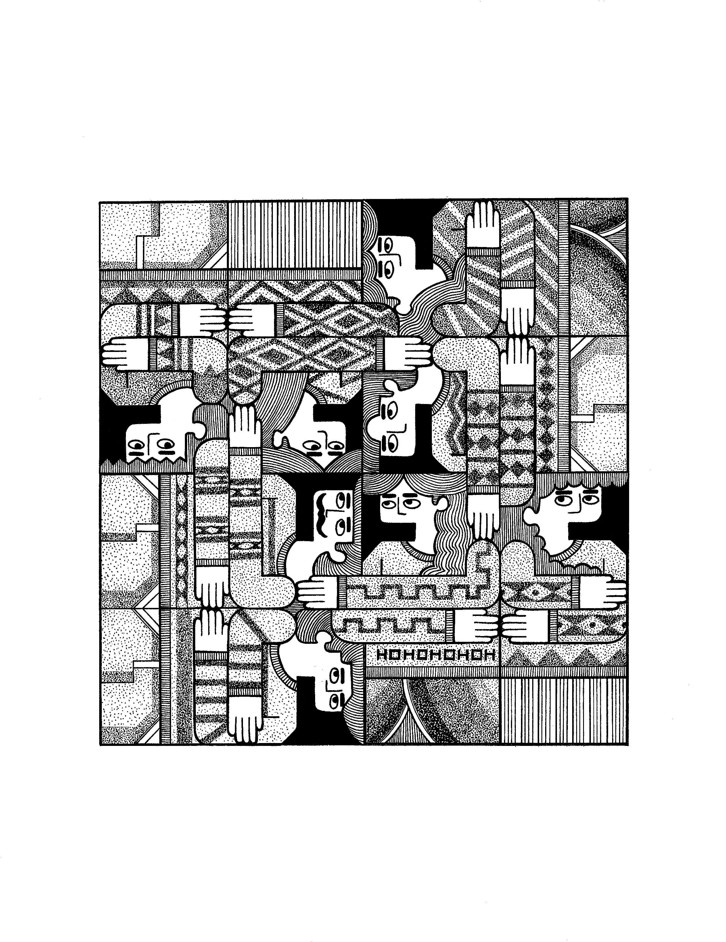 - The artwork depicts the picture of a family shaped like square dining table symbolizes unity and simplicity. Through time, each children will eventually build a family but touching of shoulders and hands assures connection of the family growing bigger. This holiday season, it is the time to reconnect, reunite and reconcile the family we have. The combination of Pointillism and line art adds texture for the Christmas Sweater design for each member of family.