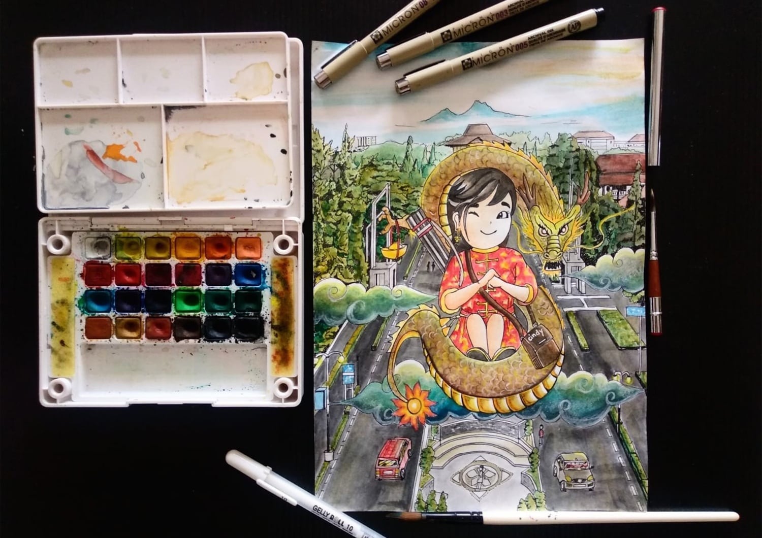 - PIGMA MICRON 003 / PIGMA MICRON 005 / GELLY ROLL WHITE / KOI COLORING BRUSH PEN / KOI WATER COLORS POCKET FIELD / SKETCH BOX
