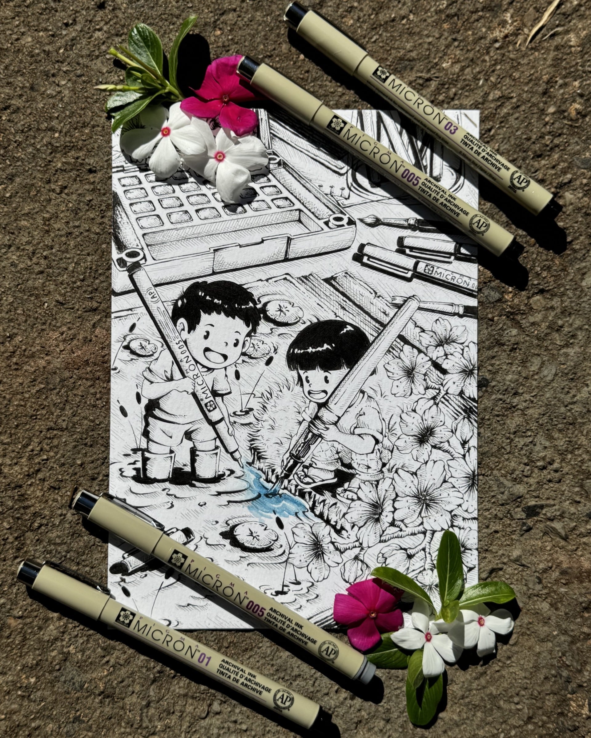 - PIGMA MICRON 003 / PIGMA MICRON 005 / PIGMA MICRON 03 / PIGMA MICRON 08 / GELLY ROLL WHITE / KOI WATER COLORS / OCKET FIELD SKETCH BOX