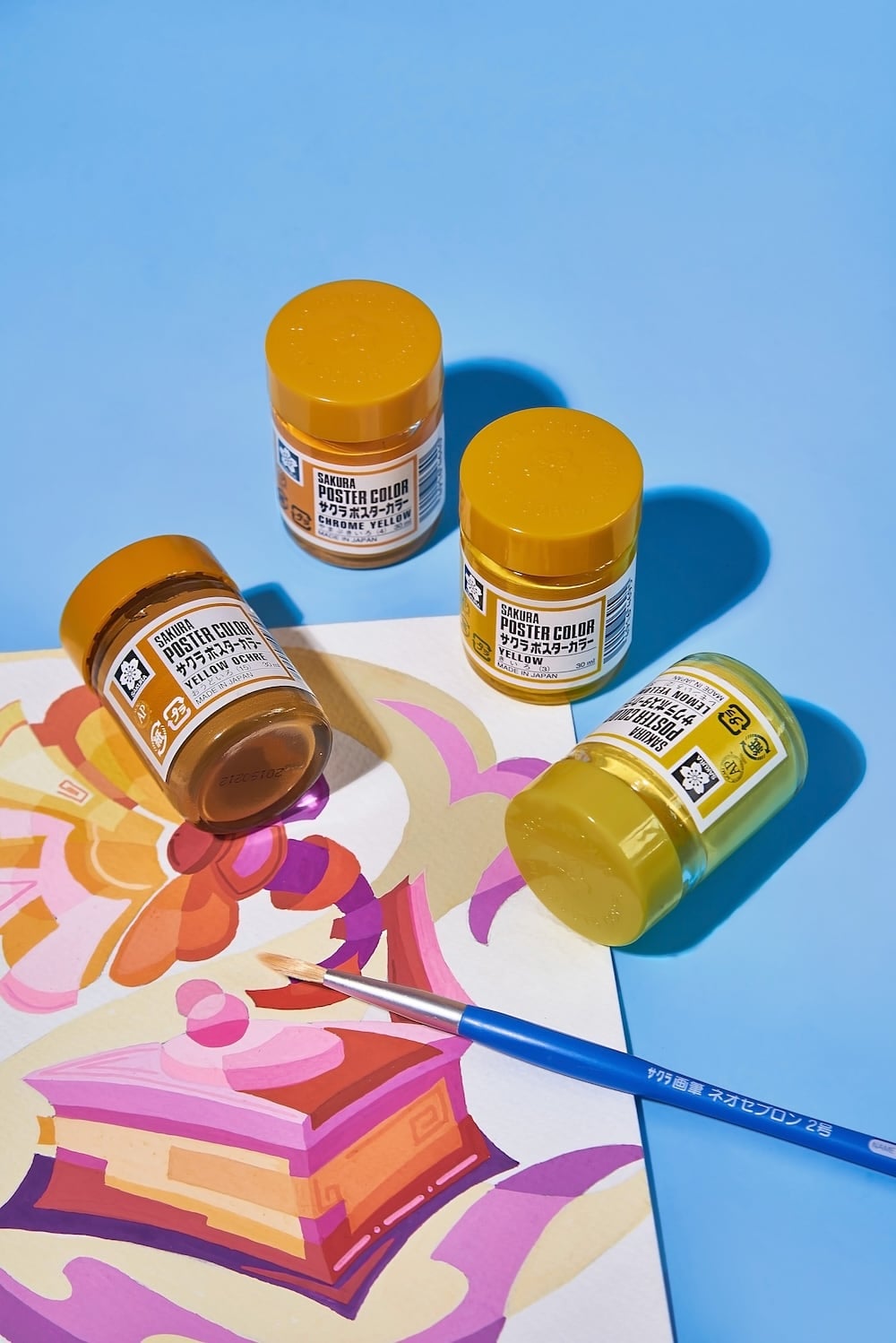 Poster Colors with high degree of opacity and color strength for design, illustration and gouache painting.